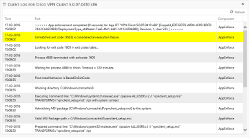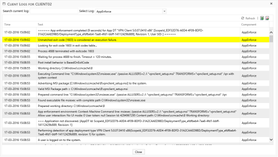 The client log icon will not always be available. If it isn’t there, then SoftwareCentral doesn’t know where to look. This can for instance be if the deployment was started outside of SoftwareCentral or was made by a Software Group or during an operating system deployment.