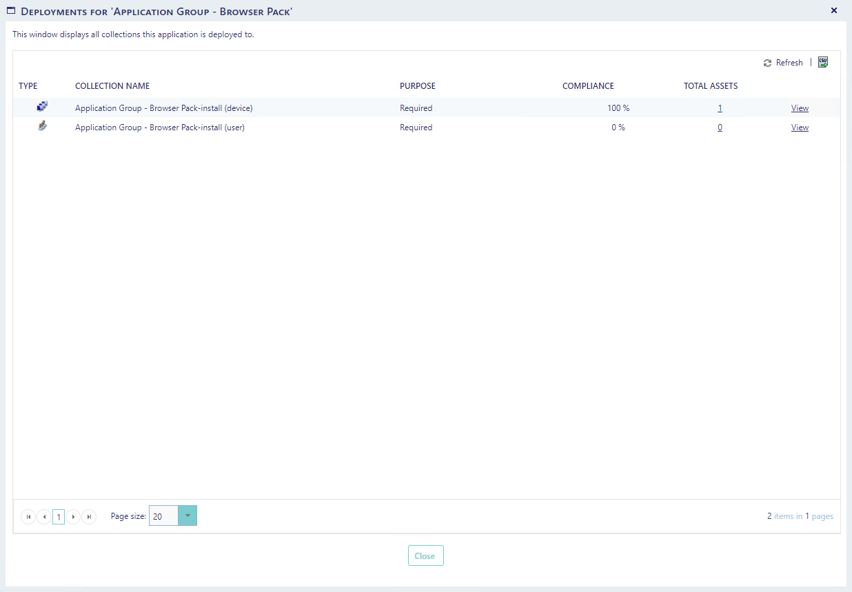 You can view the deployment compliance by clicking on the number of deployments from the Application Groups interface.