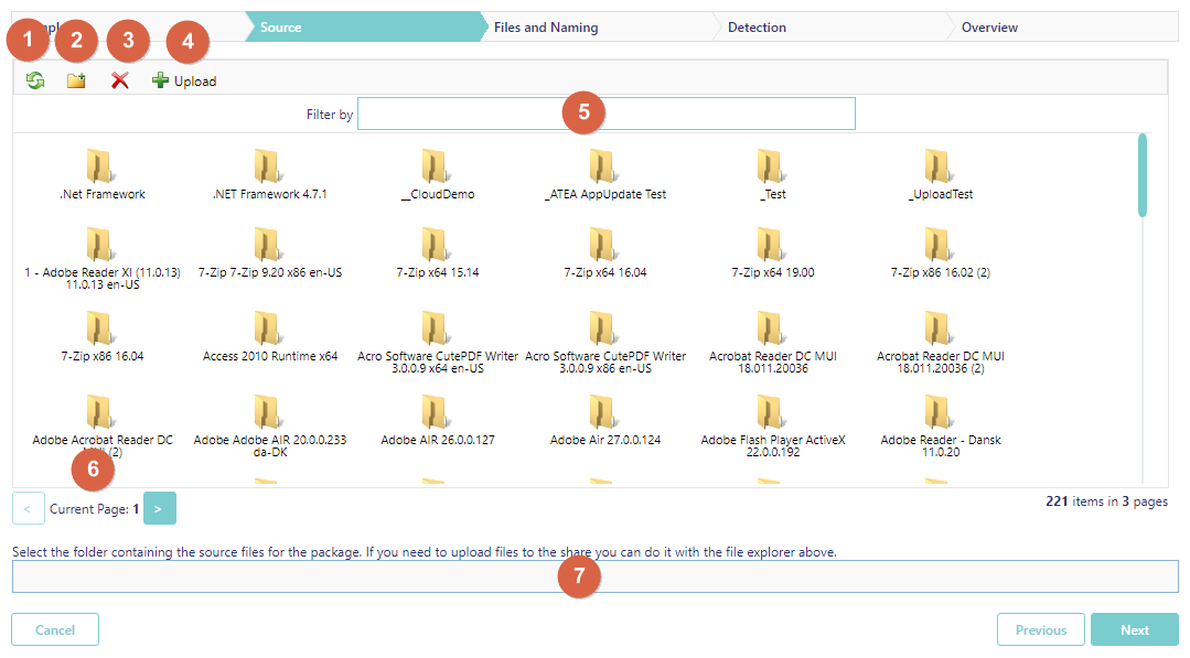 6. Only 100 files or folders can be displayed at once. Use the pager to change page or search for the item you are looking for.