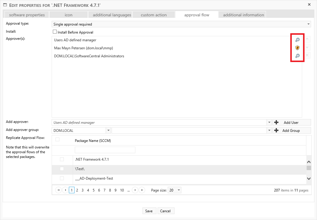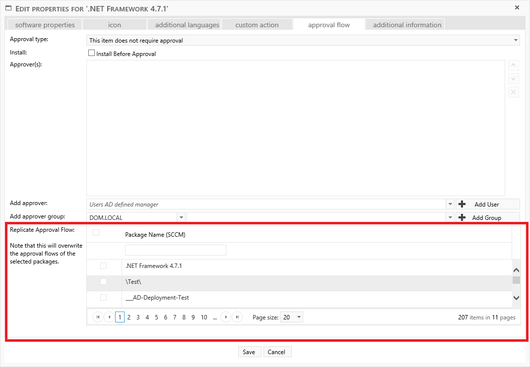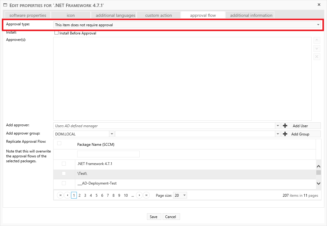Adding AD-Groups as approvers will impact the performance of the Approvers View interface. We advise you to add no more than a couple of AD-groups. You can add those AD-groups to as many shop items and packages as you like without impacting the performance further. |