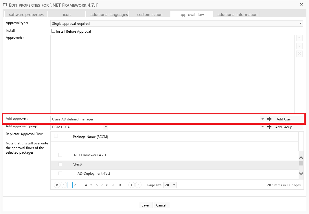 The approver conditions can be helpful to get the right person to approve an order in larger environments. You can for instance set a condition saying that all computers which is a member of the “Clients - EU – Denmark” collection will have this approver and all who is a member of this collection will have this approver and so on.