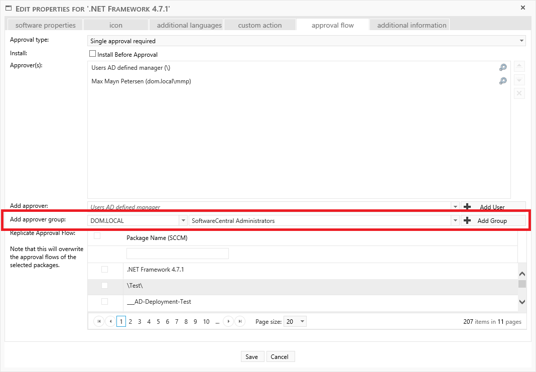 Select an AD-Group from the "Add approver group" drop-down list. When the approver group is selected, click on the “Add Group” button to add the approver group to the list.