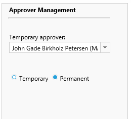 Once an approver has been selected from the drop-down box in the left menu, you can select a temporary approver from the drop-down box in the right hand side menu.