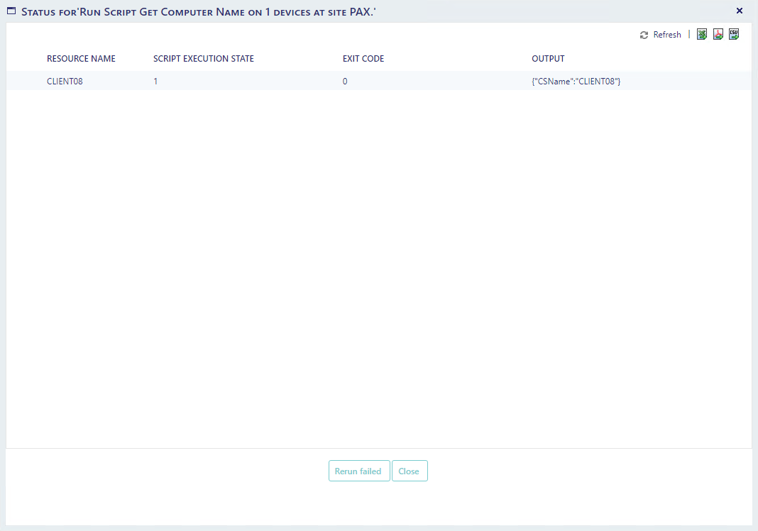 When you press "Execute Script", the window closes and another window opens with the status of the script and its output for each targeted device.