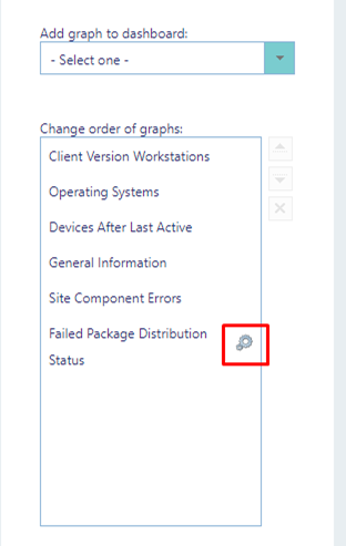 Next the different types of graphs or grids are selected in the drop-down menu. When an item is selected it will automatically be added to the list of items in the dashboard.
