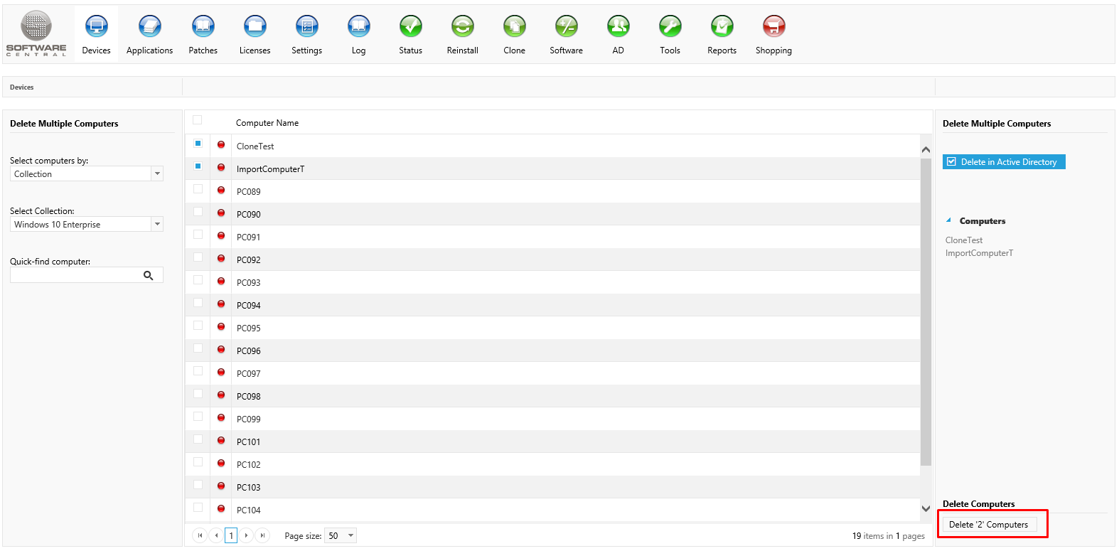 | Interfaces > Devices > Delete Multiple Computers |