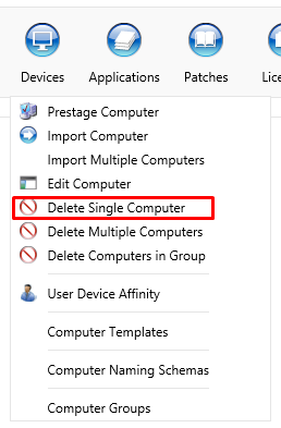 Delete Single Computer is found under the Devices menu: