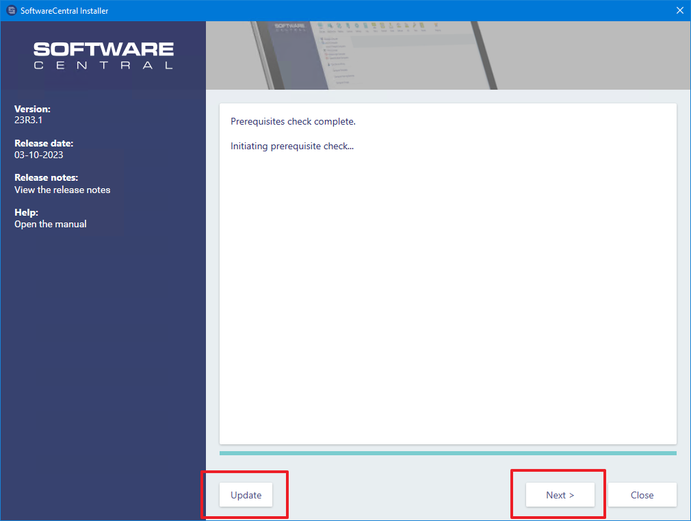 Before you update SoftwareCentral you should make a backup of the SoftwareCentral database.