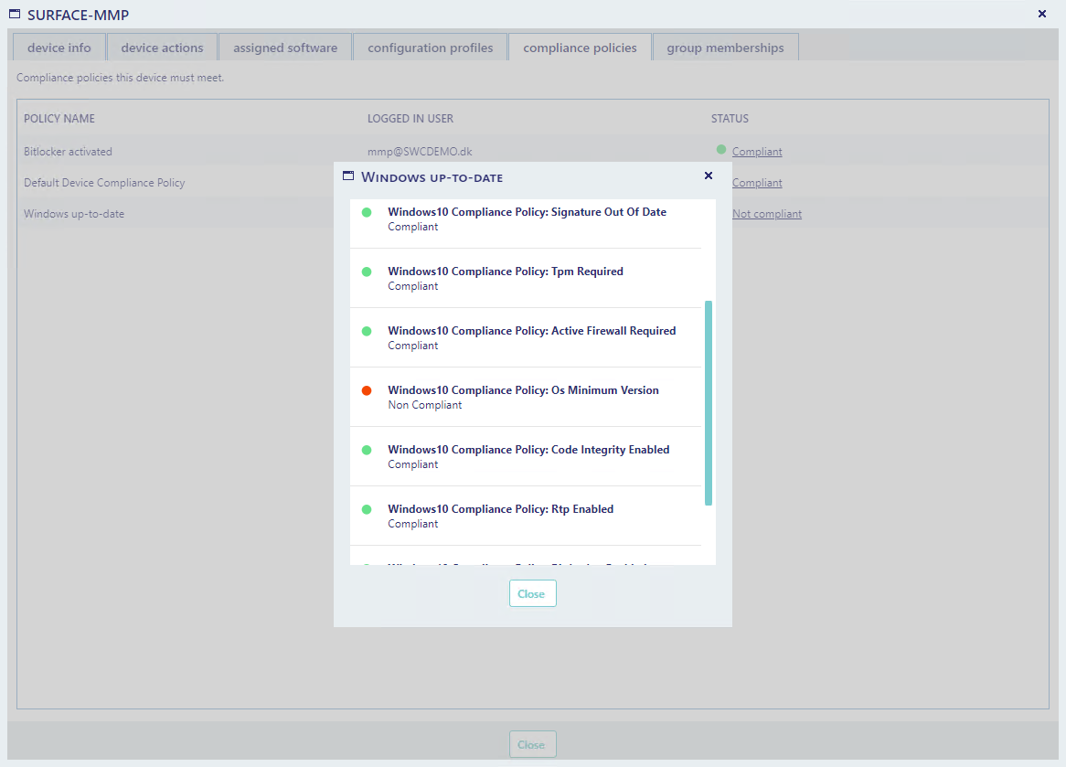 In the example below, you can see that the current device dot meet the minimum operating system version to be comliant.