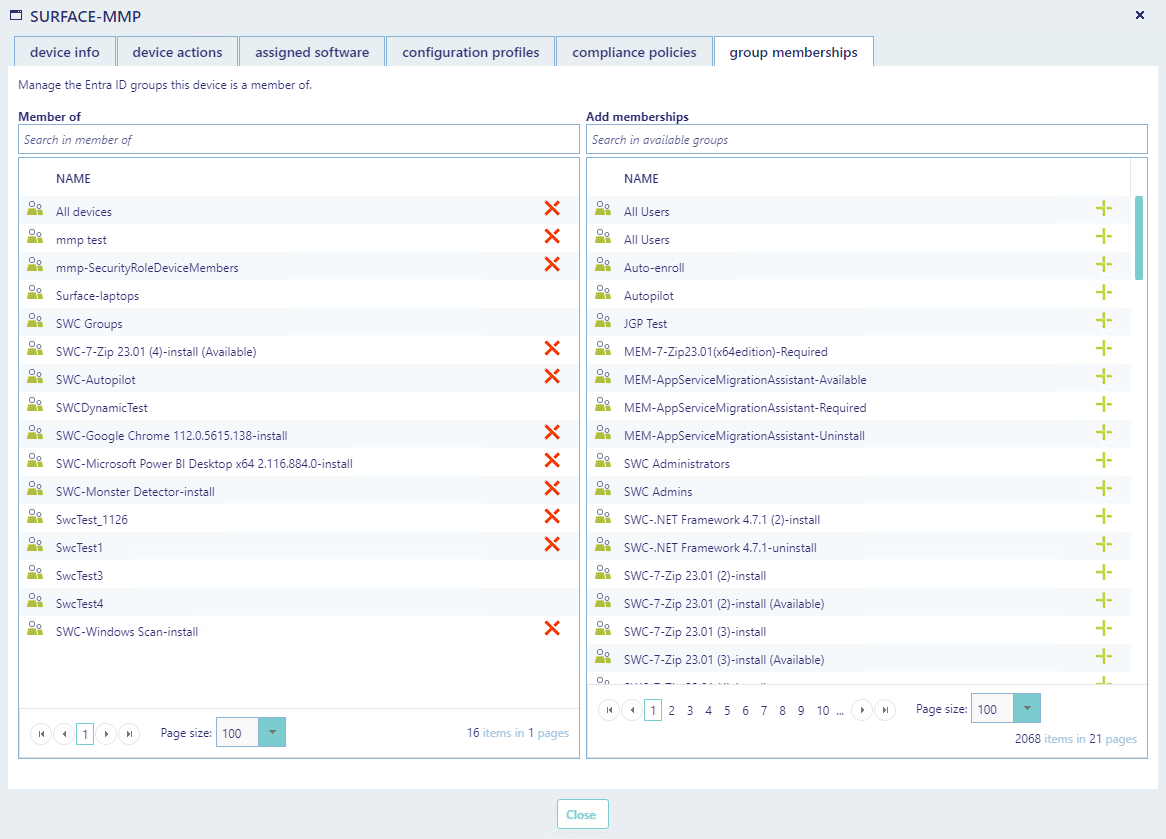 From the group memberships tab, you can see all Entra ID groups the device is a member of.