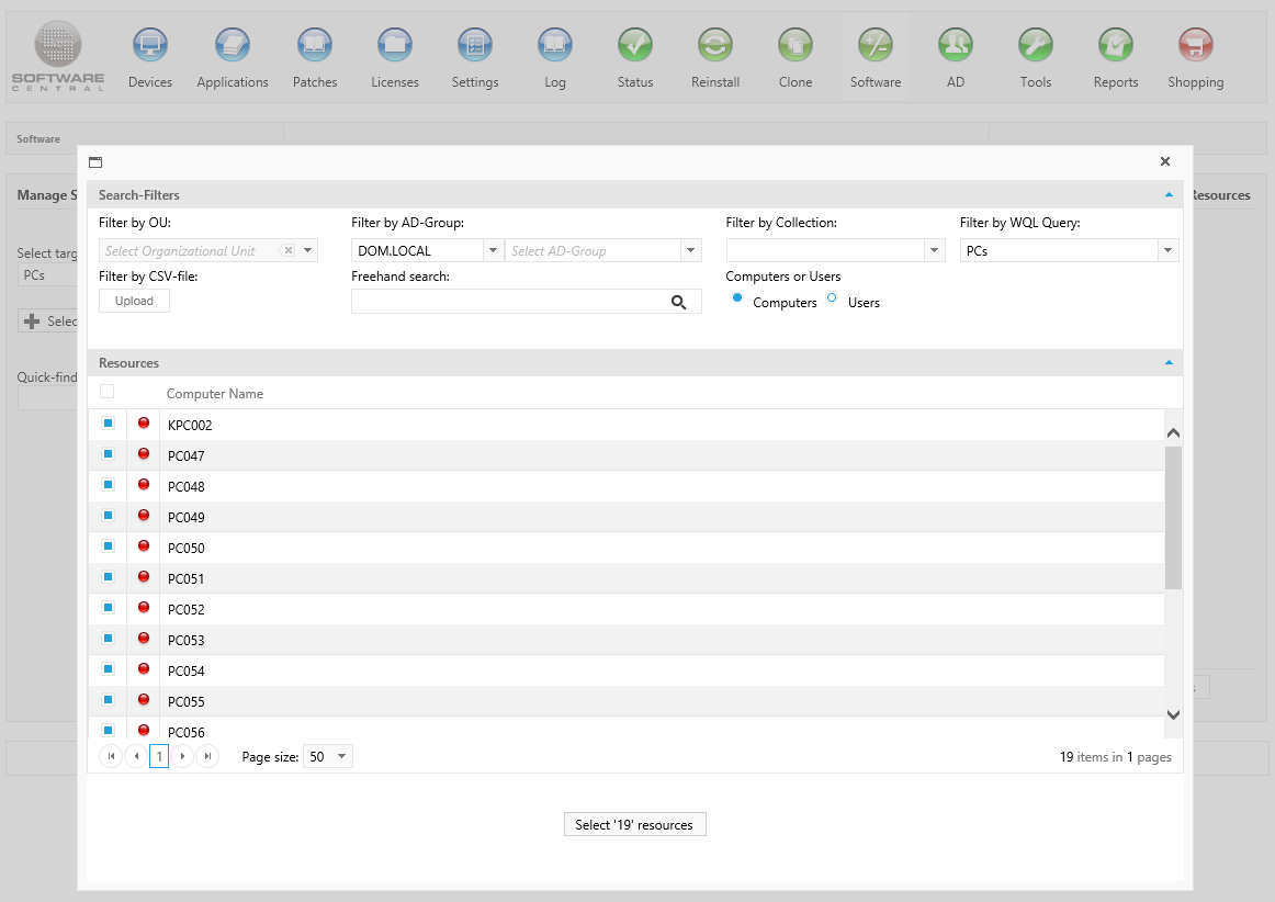 Select or deselect the desired computer and click on the "Select 'x' resources" button when done.