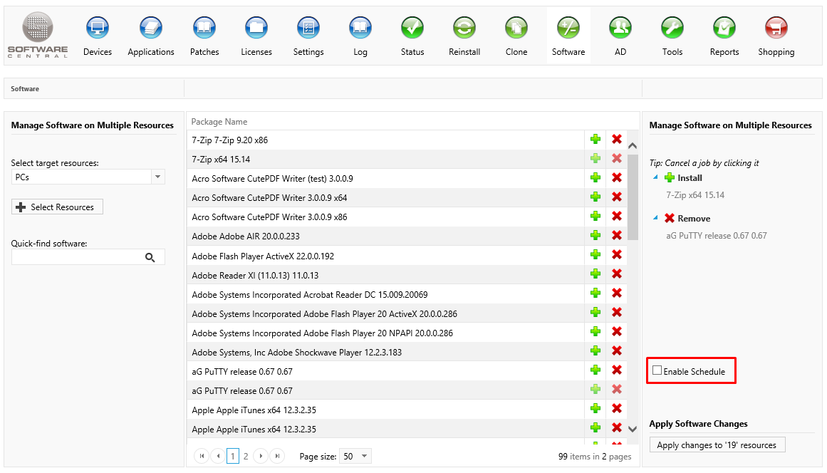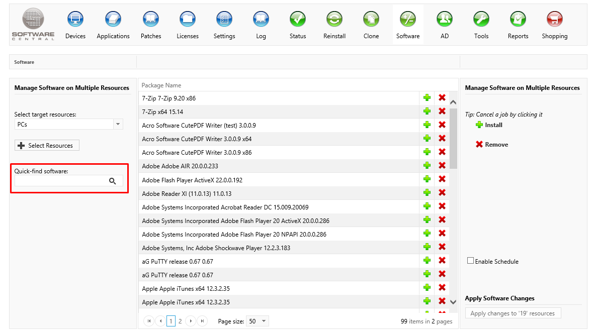 Manage Software on Multiple Resources can be used to add or remove programs from multiple computers in a single operating.