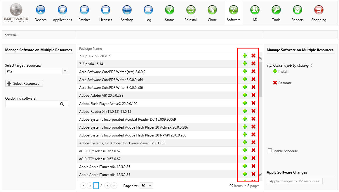 | Interfaces > Software > Manage Software on Multiple Resources |