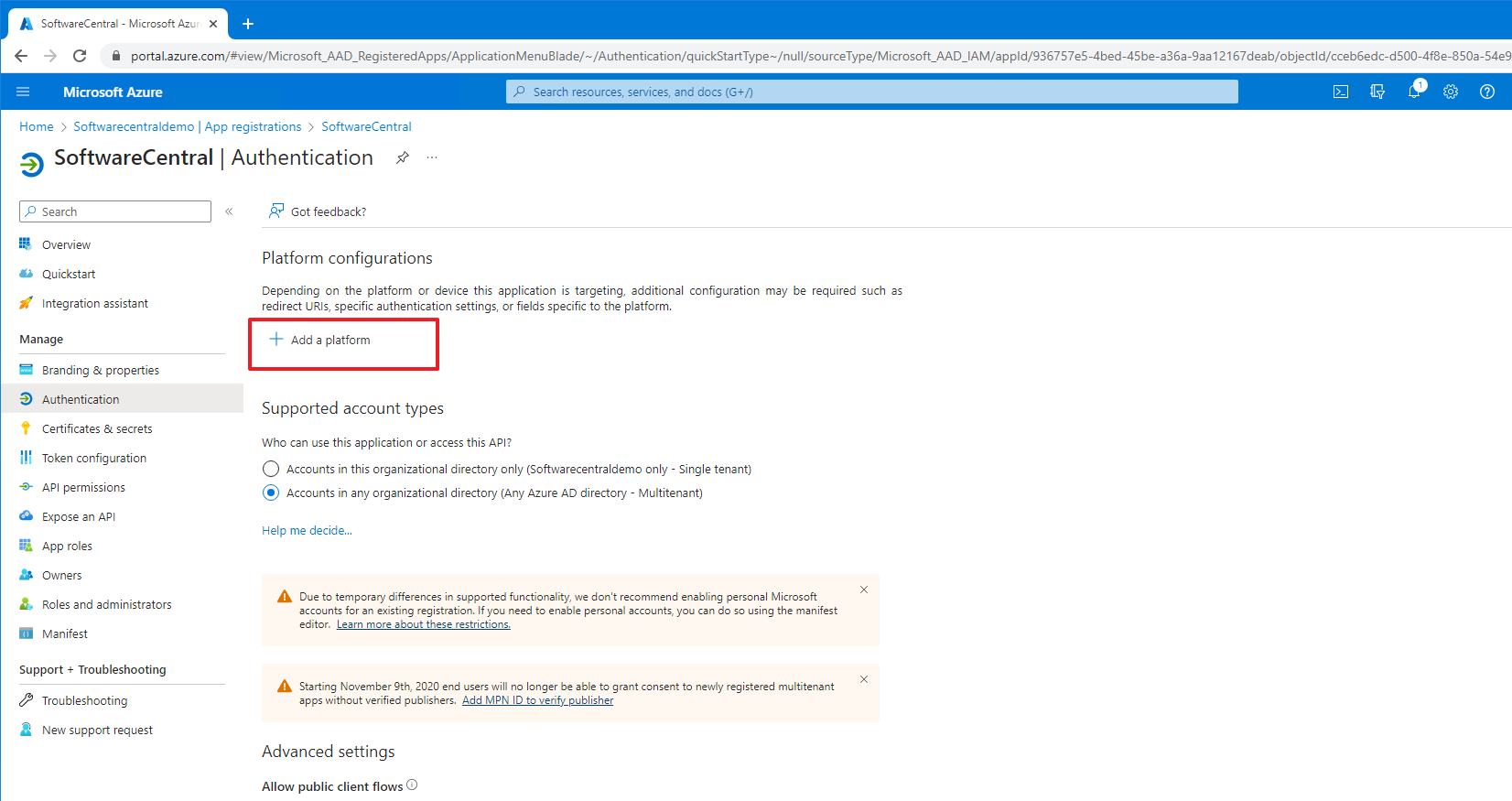 Click on the "Add a platform" button.