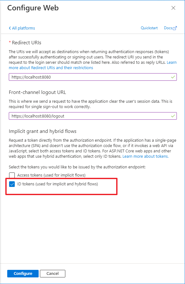 Remember to check the "ID tokens" checkbox at the bottom.