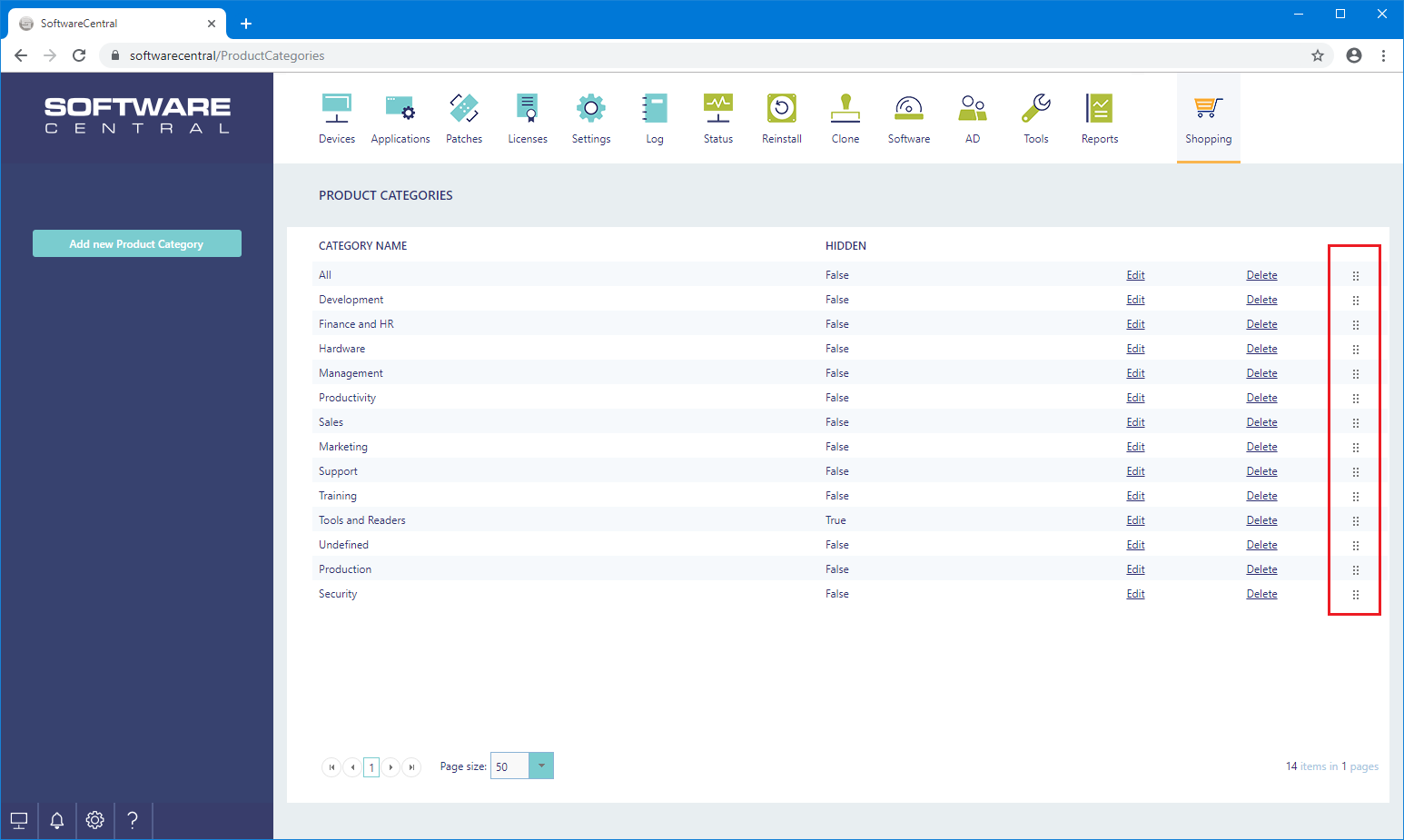Product Categories can also be assigned to packages from the Software Administration page and Custom Shop Items from the Custom Shop Items page.