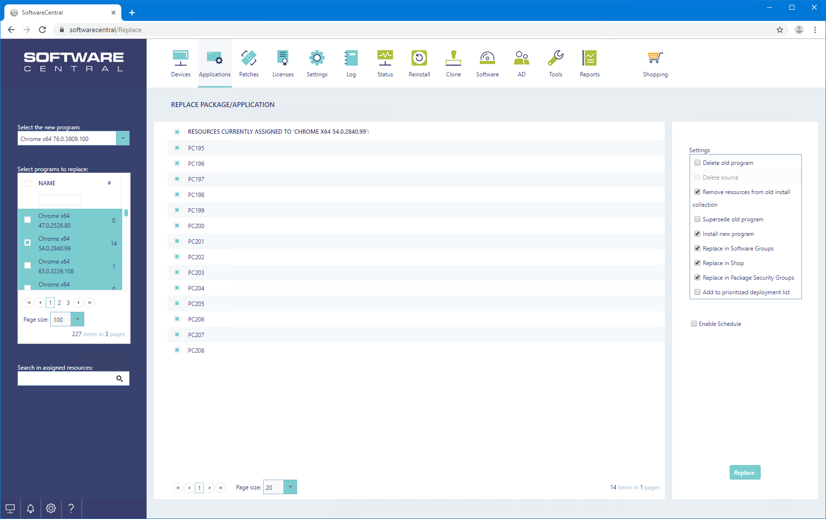 SoftwareCentral will then auto suggest packages to replace and mark them with a green color.