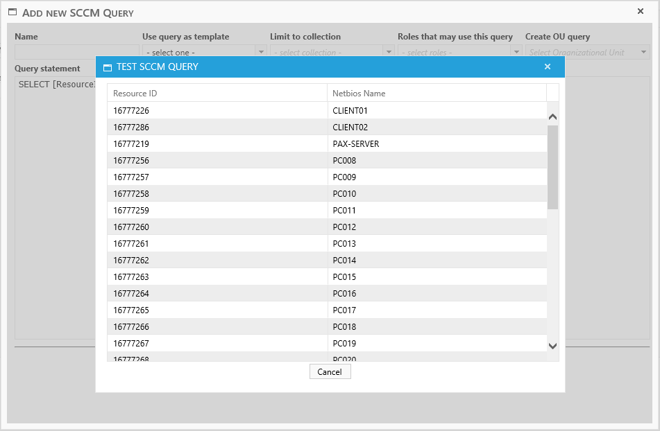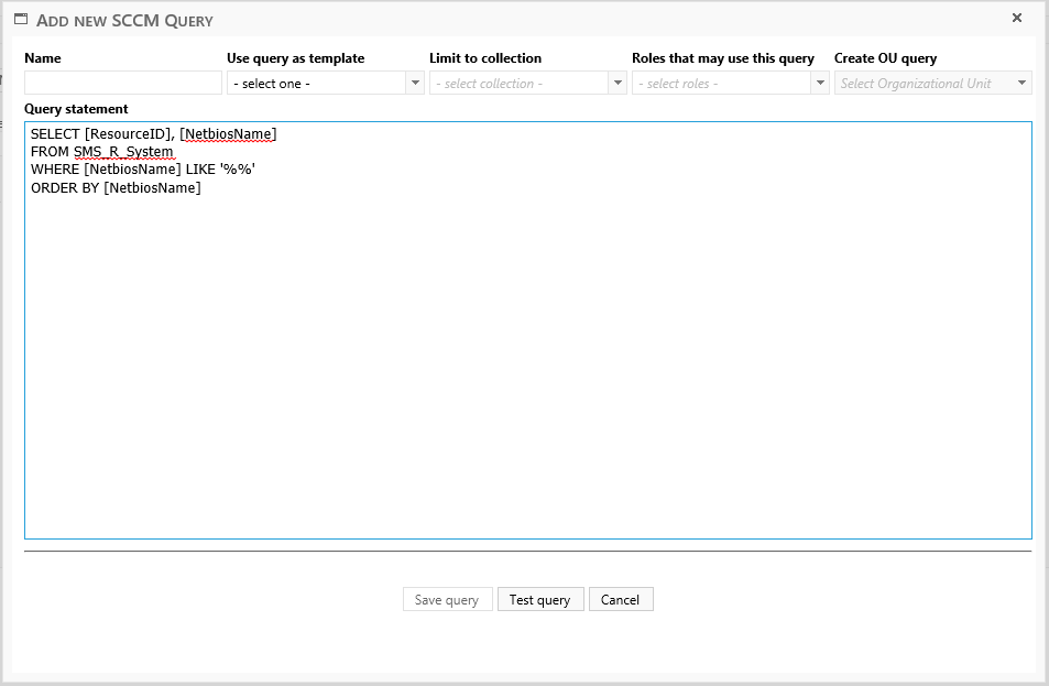 To create a new SCCM query press the “Add new SCCM query” button found in the left side of the main interface as seen above.