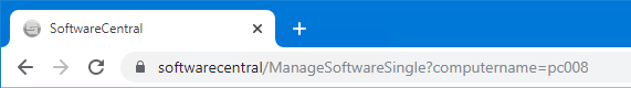 E.g.: https://softwarecentral/ManageSoftwareSingle?computername=pc008