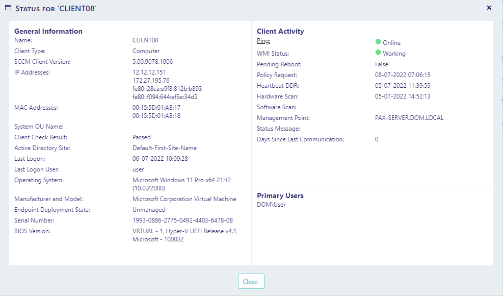 From here you can see information about the computer, assigned IP-addresses, last heartbeats and so on.