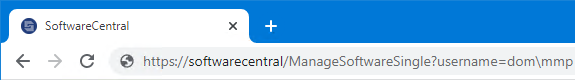 E.g.: https://softwarecentral/ManageSoftwareSingle?username=dom\mmp