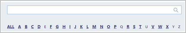 The alphabetical search bar below displays all items which starts with the pressed character.