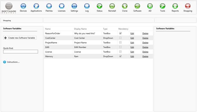 To configure software variables, go to Shopping/Software Variables in SoftwareCentral.