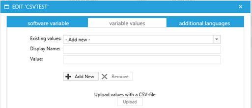 It is also possible to use a CSV-file to upload an amount of variable values to the software variable (only for dropdown-type values).