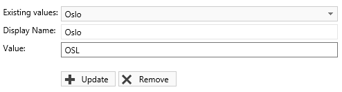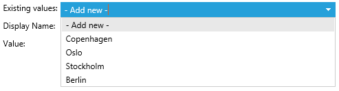 All the lines in the CSV-file will be added to the dropdown. SoftwareCentral will replace the value of any existing items that have a display name equal to one in the CSV-upload. After uploading, you can still proceed with regular creation, editing or deletion of values.