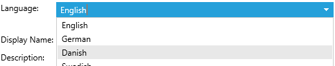 Now we will make a Danish translation. Again we open the language drop-down box, but this time we select “Danish”: