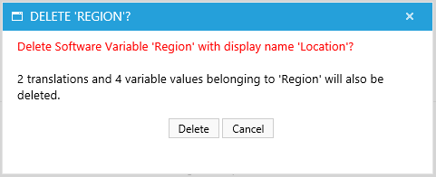 To delete a software variable, click on the Delete button. A confirmation box will appear before the variable is deleted: