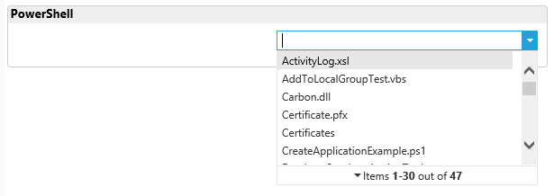 Drop-Down with dynamic data source - A drop-down box, where the data source is a PowerShell script you have created. The script must return a list of objects.