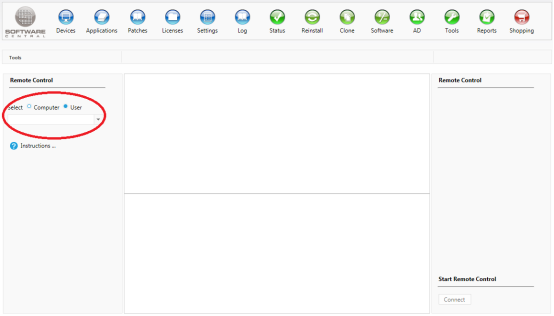 In the left hand side menu, select the user radio button and use the drop-down bar below to search for the user, whose computer you wish to take control over: